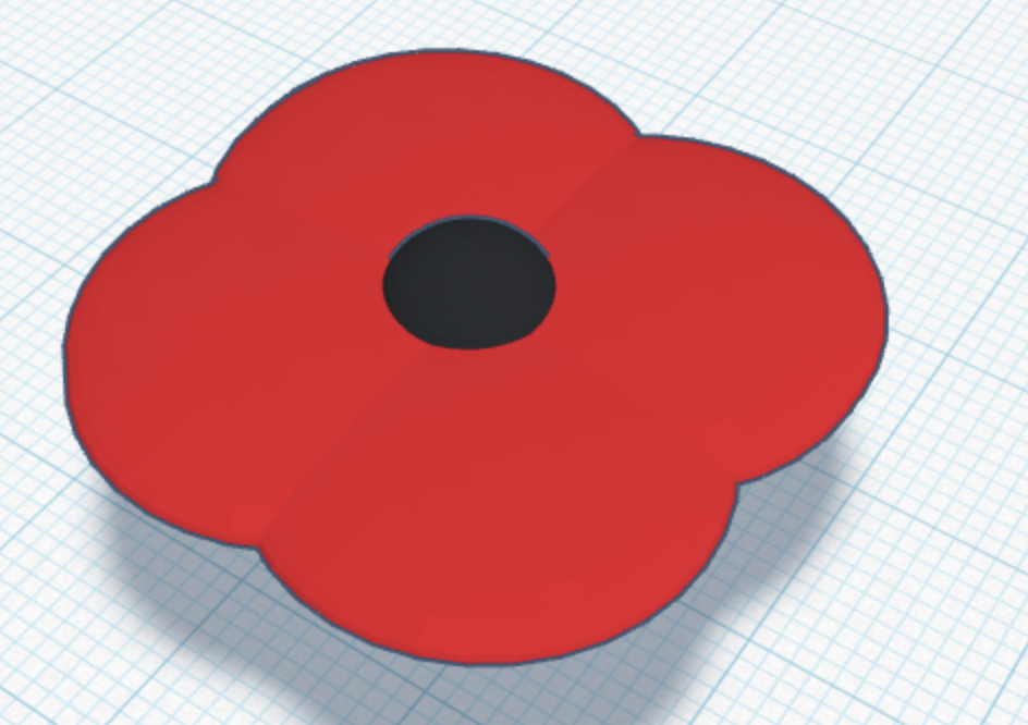 We created poppies in Tinkercad for Remembrance Day. This is the screenshot: